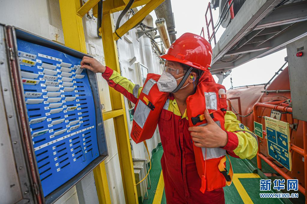 4月25日,工人在中國(guó)海油樂東15-1氣田上進(jìn)行應(yīng)急演練。