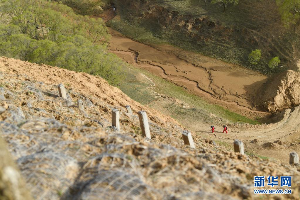 4月28日,延長氣田采氣二廠巡線隊員在巡線途中。新華社記者 張博文 攝