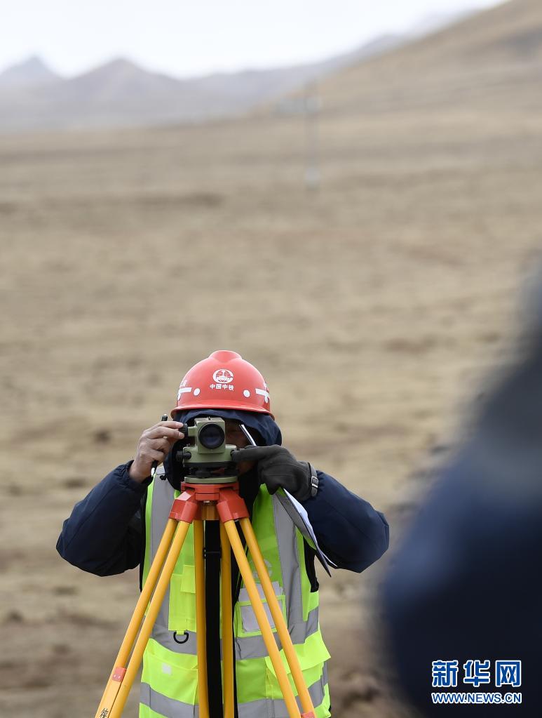 5月4日,中鐵二局建設(shè)工人在盤(pán)大公路工地上檢查施工路段平整度。