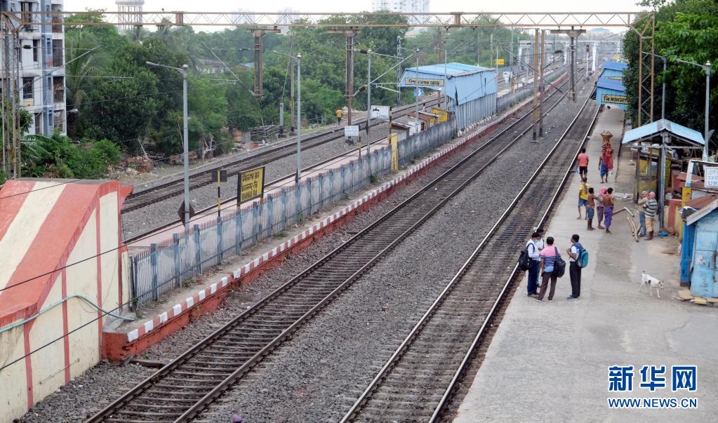 5月6日,在印度加爾各答,往日繁忙的火車站由于當(dāng)?shù)卣疄榭箵粢咔殛P(guān)閉了鐵路線而行人稀少。