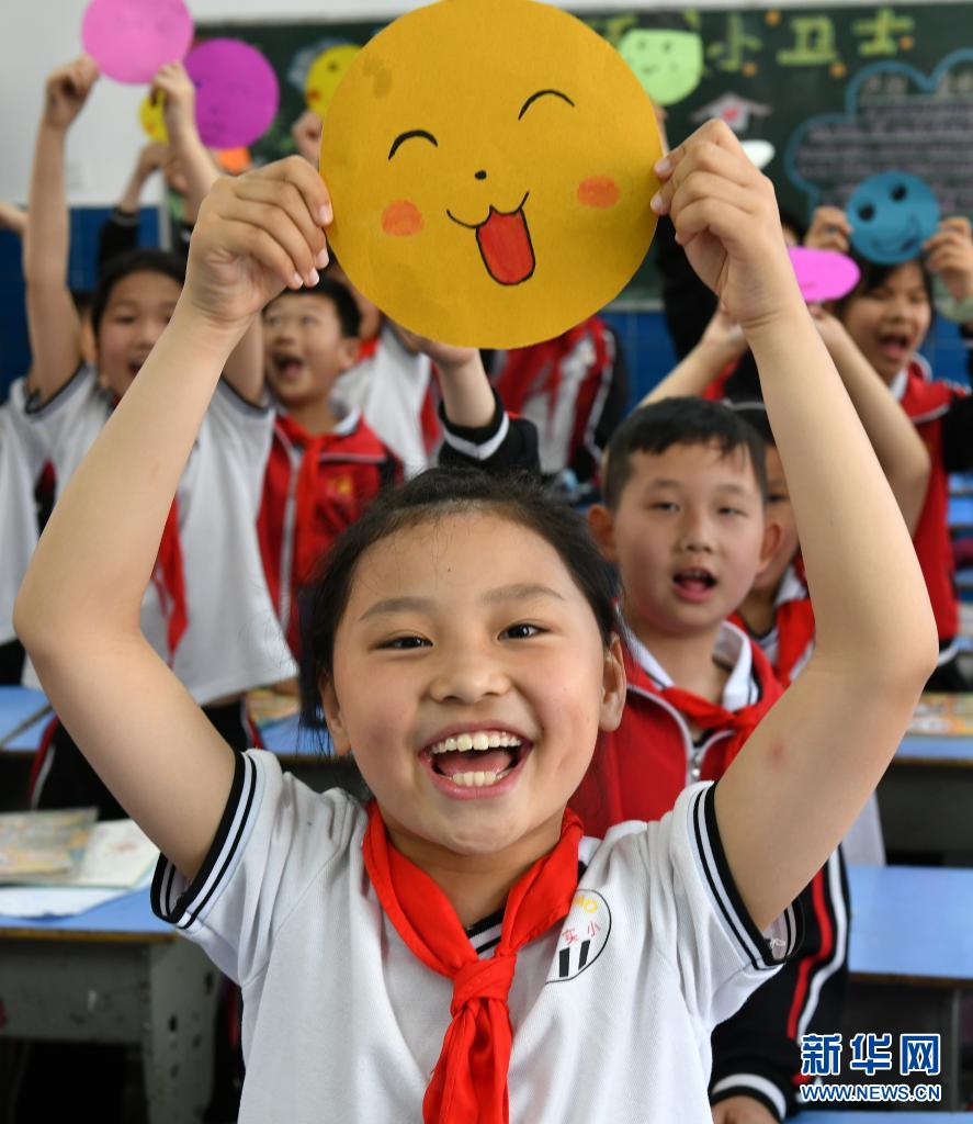5月7日,湖北省宜昌市秭歸縣實(shí)驗小學(xué)的學(xué)生展示自己制作的笑臉。世界精神衛(wèi)生組織將每年的5月8日定為“世界微笑日”,希望通過微笑促進(jìn)人類身心健康,增進(jìn)社會和諧。新華社發(fā)(王輝富 攝)