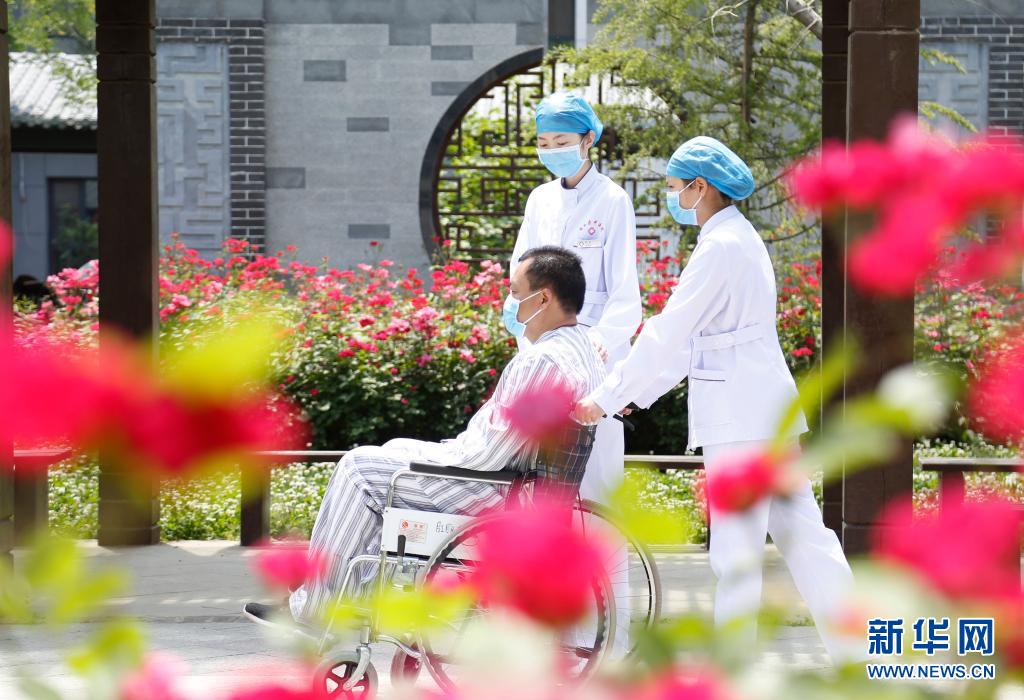 5月11日,河北省邢臺(tái)市南和區(qū)人民醫(yī)院護(hù)士在院區(qū)陪伴患者,將關(guān)懷融入日常護(hù)理。