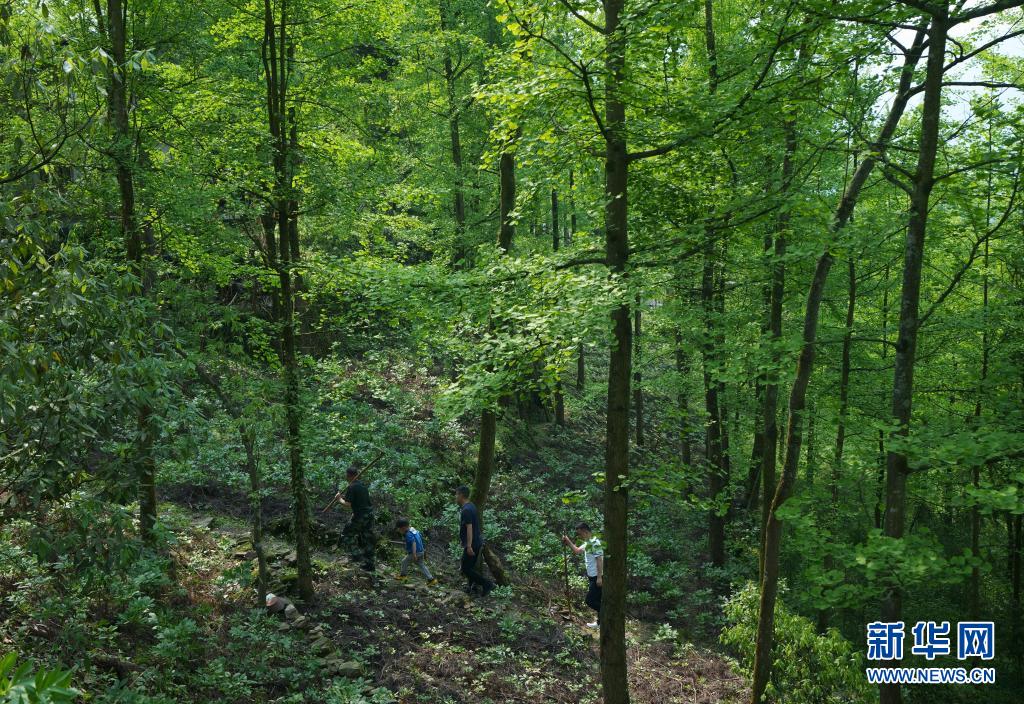 5月4日,林興聰(左一)帶著兒孫們?nèi)サ乩飫趧印?新華社記者 江宏景 攝