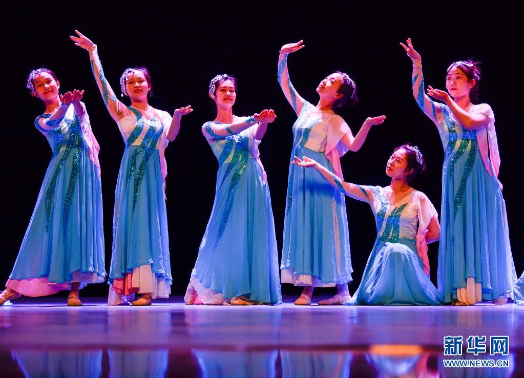 天津理工大學聾人工學院的舞蹈隊員們在學校的劇場里進行彩排(5月10日攝)。新華社發(fā)(孫凡越攝)