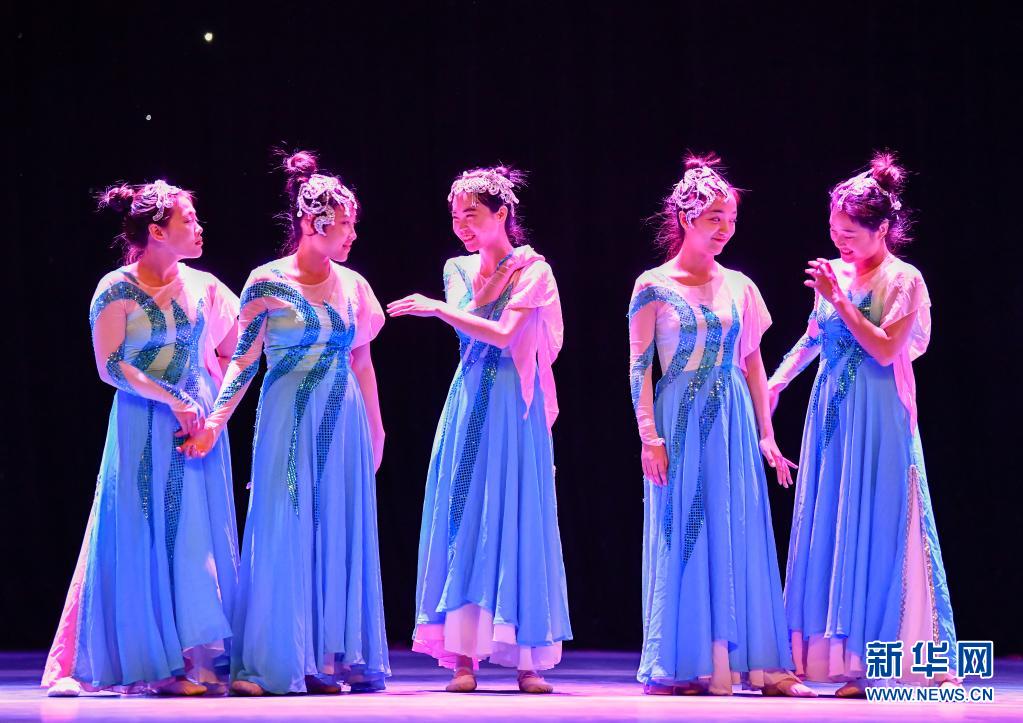 在天津理工大學(xué)的劇場(chǎng)里,天津理工大學(xué)聾人工學(xué)院的舞蹈隊(duì)員們?cè)诓逝砰g隙用手語(yǔ)交流(5月10日攝)。新華社發(fā)(孫凡越攝)
