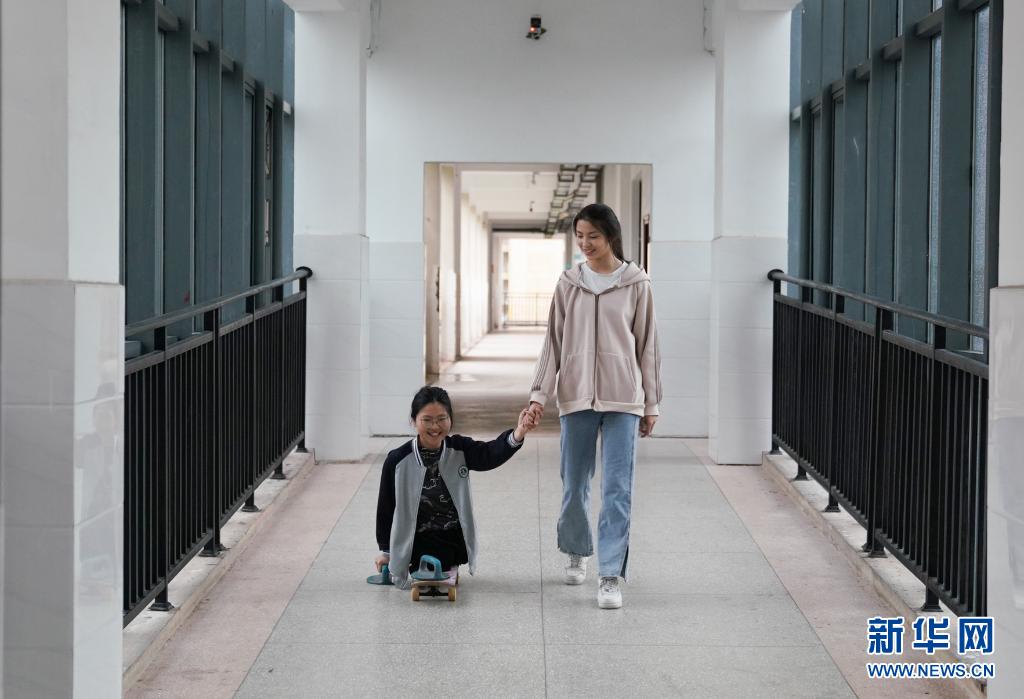 16歲的蔣張子怡是江西上饒中學高中一年級的學生。2010年一場車禍奪去了她的雙腿,如今的她只能依靠滑板代步,用雙手前行,為此,大伙都稱她“滑板姑娘”。