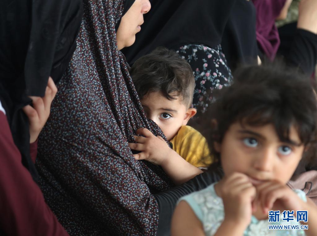 5月17日,受巴以沖突影響而逃離家園的巴勒斯坦婦女和兒童在加沙地帶拉法的一所學(xué)校臨時(shí)棲身。