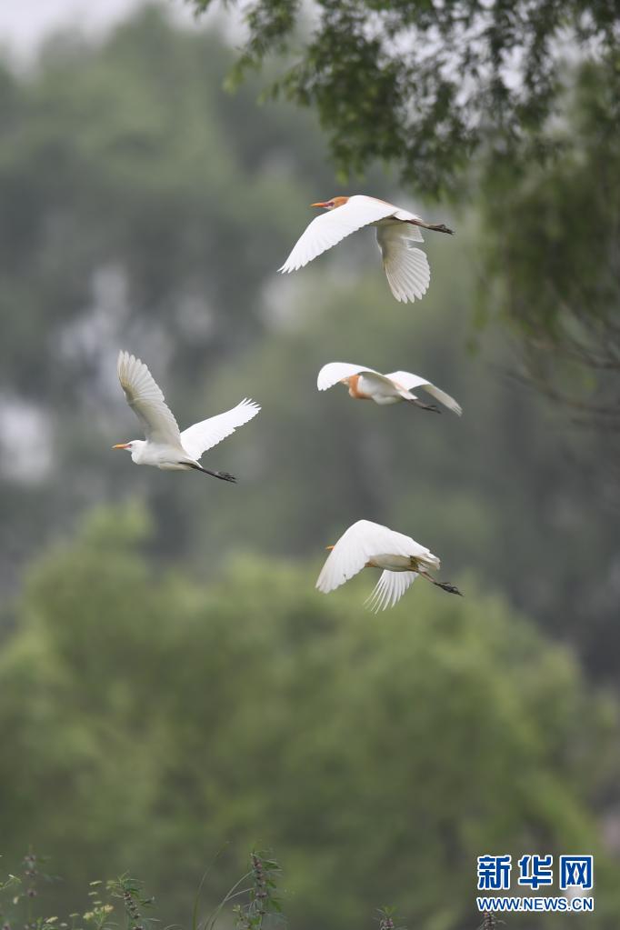 隨著天氣轉(zhuǎn)暖,大批鷺鳥飛到湖南益陽沅江市的南洞庭湖區(qū)筑巢、棲息、繁殖。