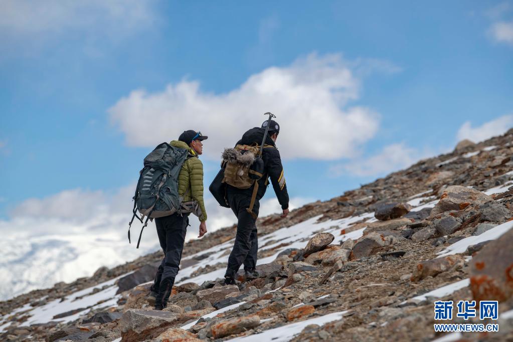 別克米爾扎·圖爾達(dá)力(右)和同伴庫(kù)爾班巴依·努爾麥麥提在進(jìn)行適應(yīng)性練習(xí)(5月15日攝)。新華社記者 胡虎虎 攝