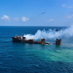6月2日,斯里蘭卡總統(tǒng)戈塔巴雅下令將起火貨船“X-PRESS PEARL”號拖向遠離科倫坡港的深海區(qū),以防引發(fā)更大的環(huán)境災難?!癤-PRESS PEARL”號貨船5月20日抵達科倫坡港西北約9.5海里錨地時發(fā)出火警求救信號。斯里蘭卡海洋環(huán)境保護局官員5月28日表示,在科倫坡港附近起火燃燒的“X-PRESS PEARL”號貨船預計將會引發(fā)嚴重環(huán)境災難。新華社發(fā)(斯里蘭卡空軍媒體處供圖)