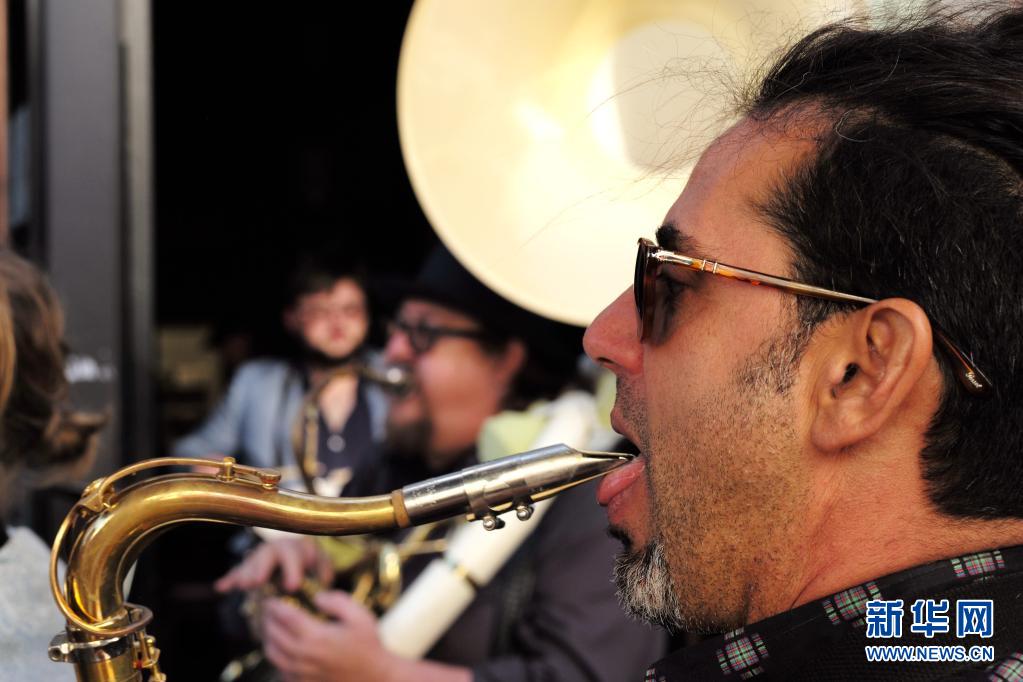 6月15日,樂隊(duì)成員在美國(guó)加利福尼亞州舊金山一家酒吧外演奏。