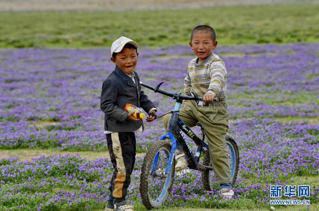 西藏當(dāng)雄縣格達(dá)鄉(xiāng)格達(dá)村的兒童在草場玩耍(6月19日攝)。