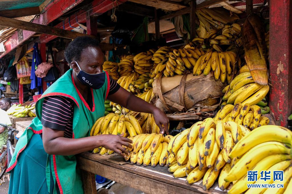 6月23日,商販在烏干達(dá)坎帕拉的納卡塞羅市場(chǎng)整理香蕉。