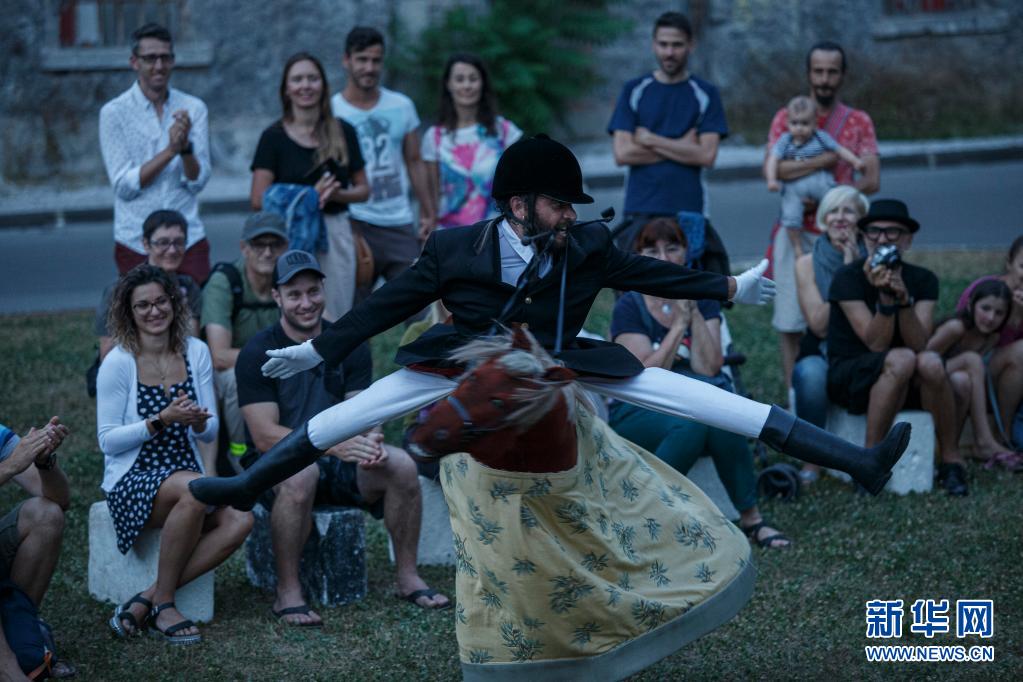 6月30日傍晚,藝術(shù)工作者在斯洛文尼亞首都盧布爾雅那進(jìn)行街頭戲劇節(jié)表演。