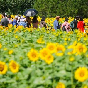 日前,北京奧林匹克森林公園北園的向日葵進(jìn)入盛花期,眾多市民和游客前來觀賞。