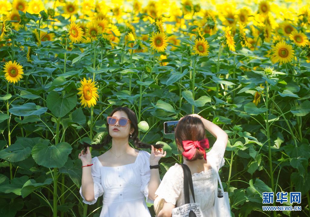 日前,北京奧林匹克森林公園北園的向日葵進(jìn)入盛花期,眾多市民和游客前來(lái)觀賞。