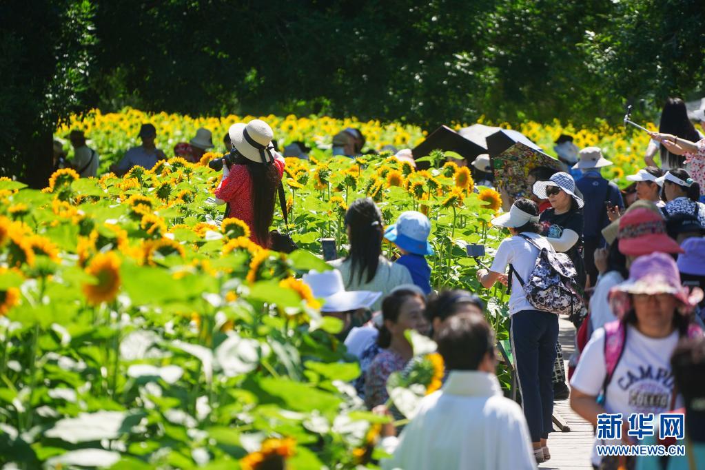 日前,北京奧林匹克森林公園北園的向日葵進(jìn)入盛花期,眾多市民和游客前來觀賞。