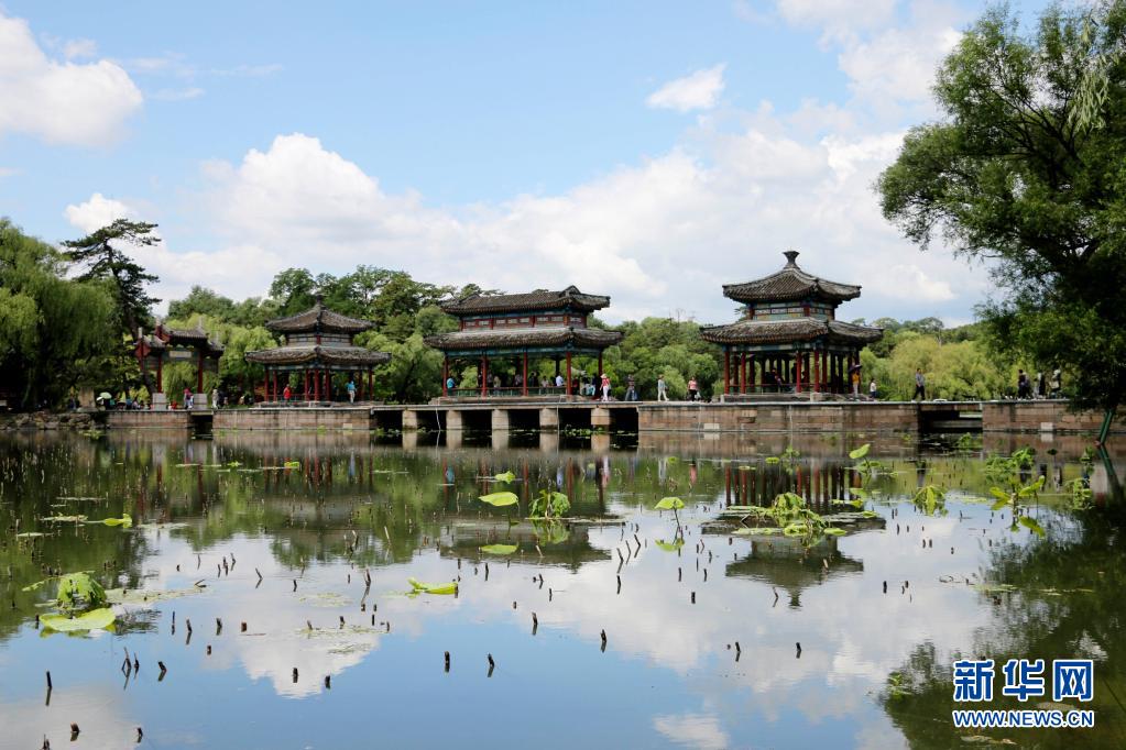 當(dāng)日,連續(xù)降雨過后的河北省承德市天氣晴朗,世界文化遺產(chǎn)承德避暑山莊在藍(lán)天白云映襯下景美如畫。