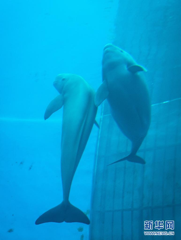 7月5日,江豚媽媽洋洋和小江豚YYC在水中游動(dòng)。新華社記者肖藝九攝