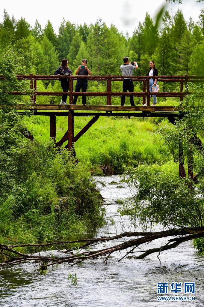 7月14日,游人在阿爾山國家森林公園內(nèi)拍照。