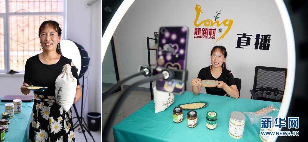 拼版照片:左圖為宋俊麗在山西省平順縣龍鎮(zhèn)村電商服務(wù)中心直播間里;右圖為宋俊麗通過網(wǎng)絡(luò)直播介紹農(nóng)產(chǎn)品(7月8日攝)。2018年,時年29歲的宋俊麗參加了縣里組織的電商培訓(xùn),在電商導(dǎo)師的鼓勵下,她嘗試了首次直播,當(dāng)時直播間里只有幾名觀眾。在自己的堅(jiān)持和電商導(dǎo)師的幫助下,如今她已收獲了不少粉絲,每次上線直播,粉絲們都會讓她推薦當(dāng)?shù)氐奶厣r(nóng)產(chǎn)品。