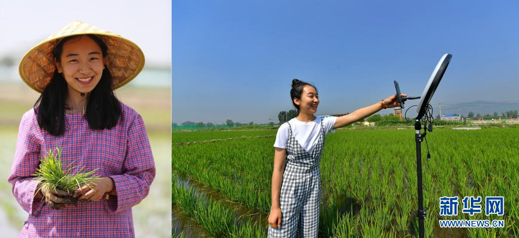 拼版照片:左圖為程玉嬌在太原市晉源區(qū)三家村水稻田里;右圖為程玉嬌在水稻田里進(jìn)行直播(7月9日攝)。今年24歲的程玉嬌2019年留學(xué)回國(guó)后,選擇了返鄉(xiāng)創(chuàng)業(yè)發(fā)展稻魚(yú)菜綜合種養(yǎng)農(nóng)業(yè)。晉源區(qū)三家村出產(chǎn)的大米遠(yuǎn)近聞名,程玉嬌在社交平臺(tái)上開(kāi)通了雙語(yǔ)直播,在科普水稻知識(shí)的同時(shí)拓展銷售渠道,不僅生意做得風(fēng)風(fēng)火火,自己也變成了小有名氣的“網(wǎng)紅”。