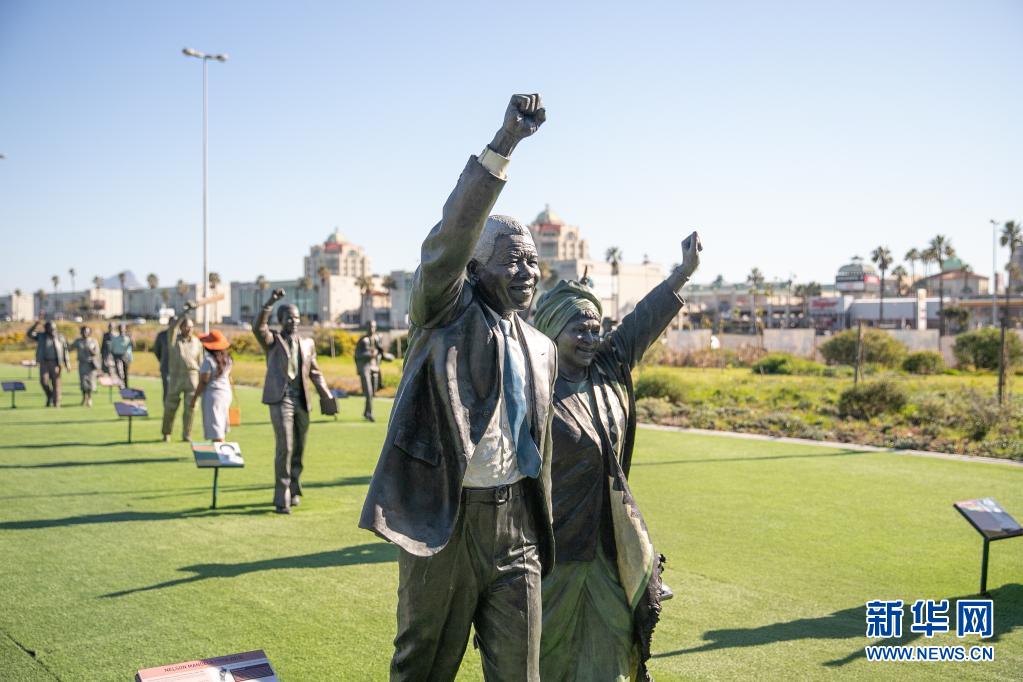 這是7月18日在南非開普敦拍攝的南非前總統(tǒng)納爾遜·曼德拉和其夫人溫妮·馬迪基澤拉-曼德拉的銅像。