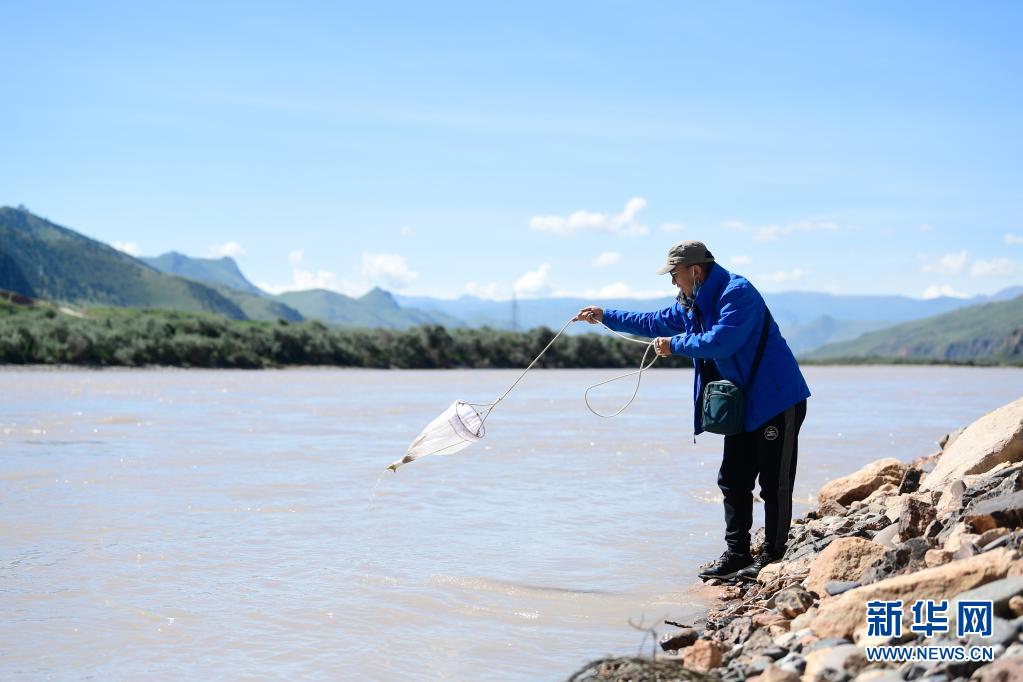 2021年長江源綜合科考的科考隊(duì)員殷大聰在采集浮游生物(7月22日攝)。