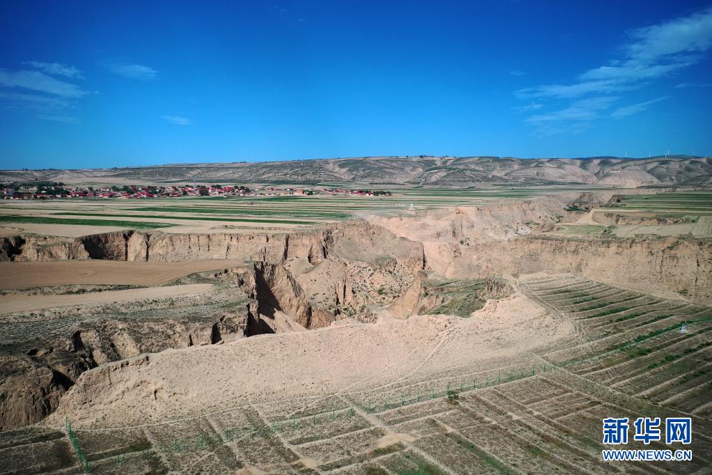 寧夏吳忠市同心縣預旺鎮(zhèn)“抗戰(zhàn)之聲”照片拍攝地(6月21日攝,無人機照片)。