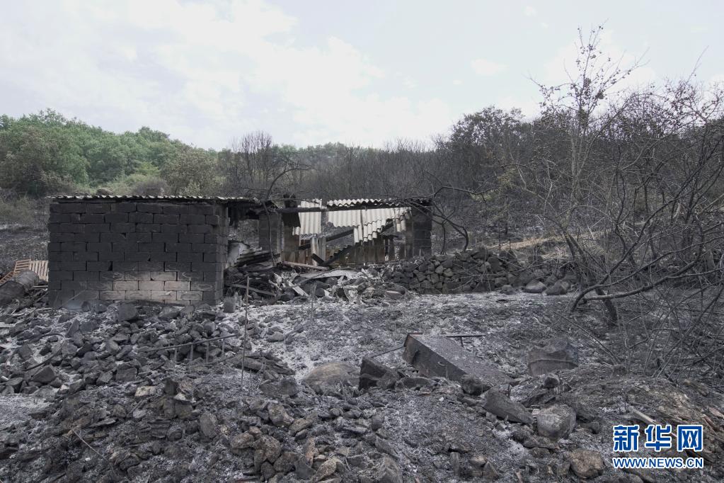 這是7月26日在意大利撒丁島奧里斯塔諾拍攝的被燒毀的房屋。