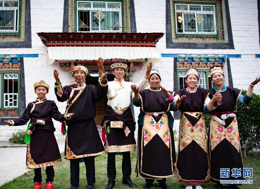 這是7月21日在林芝市巴宜區(qū)嘎拉村拍攝的身著盛裝的當(dāng)?shù)厝罕姟?/p>