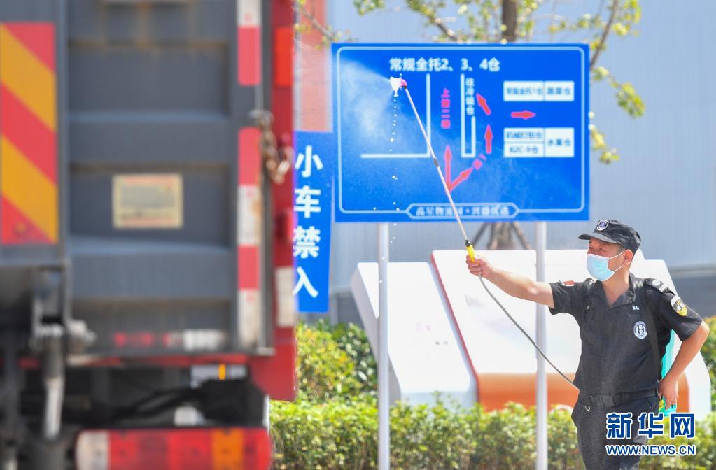8月1日,在位于長沙市望城區(qū)的湖南高星物流園門口,工作人員對進(jìn)入園區(qū)的貨車消毒。