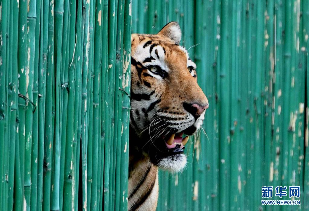 這是8月1日在印度新德里動物園拍攝的孟加拉虎。