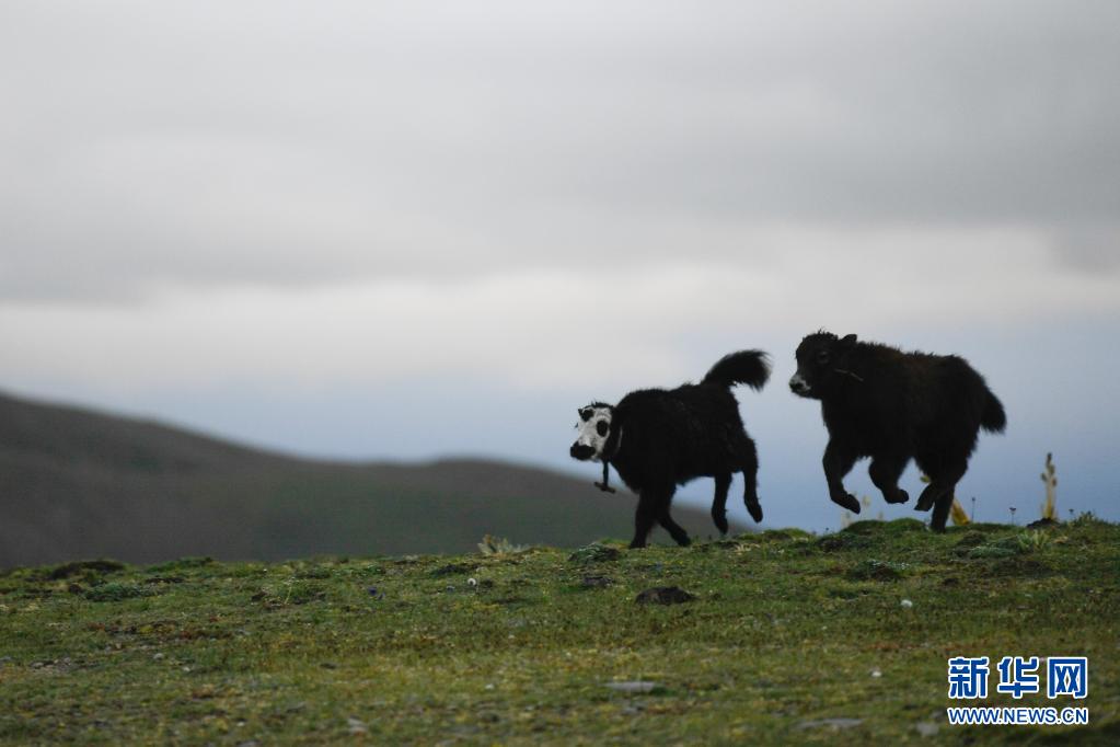 這是8月3日在瑪沁縣當(dāng)洛鄉(xiāng)貢龍村的夏季草場上拍攝的牦牛犢。