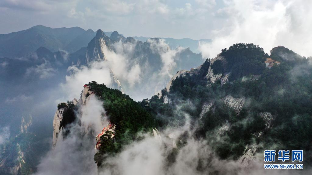 8月14日,奇景幻影的西岳華山風(fēng)光(無(wú)人機(jī)照片)。