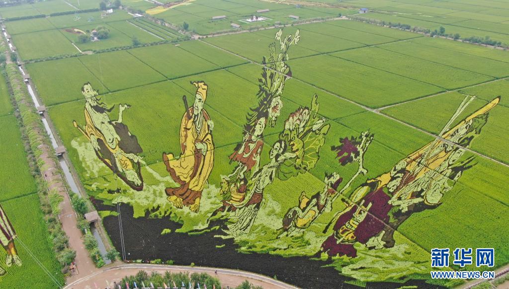 這是8月16日拍攝的稻田畫《八仙過(guò)?!罚o(wú)人機(jī)照片)。