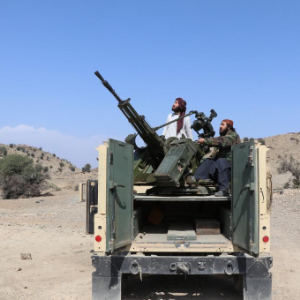 2月27日,阿富汗安全部队成员在阿富汗霍斯特省参与针对巴基斯坦的军事行动。