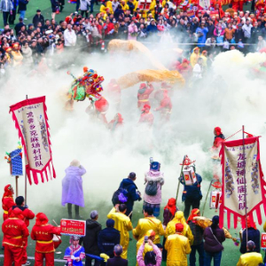 2月27日,贵州省铜仁市石阡县举办主题为“龙腾马跃·福满阡城”的仡佬毛龙节贺新春活动。来自全县的80支毛龙队和9支非遗展演队齐聚石阡县城,举行毛龙巡游、毛龙祈福、舞龙大赛、非遗展演等活动,欢庆毛龙节,喜迎新春。