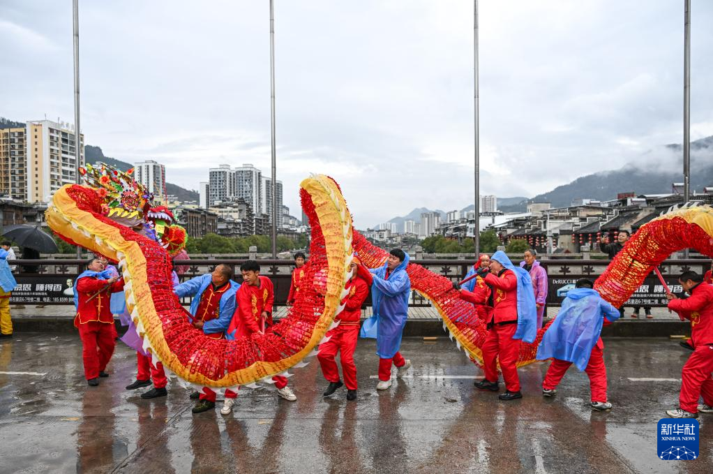 2月27日,人们在贵州省石阡县仡佬毛龙节上观看非遗展演。