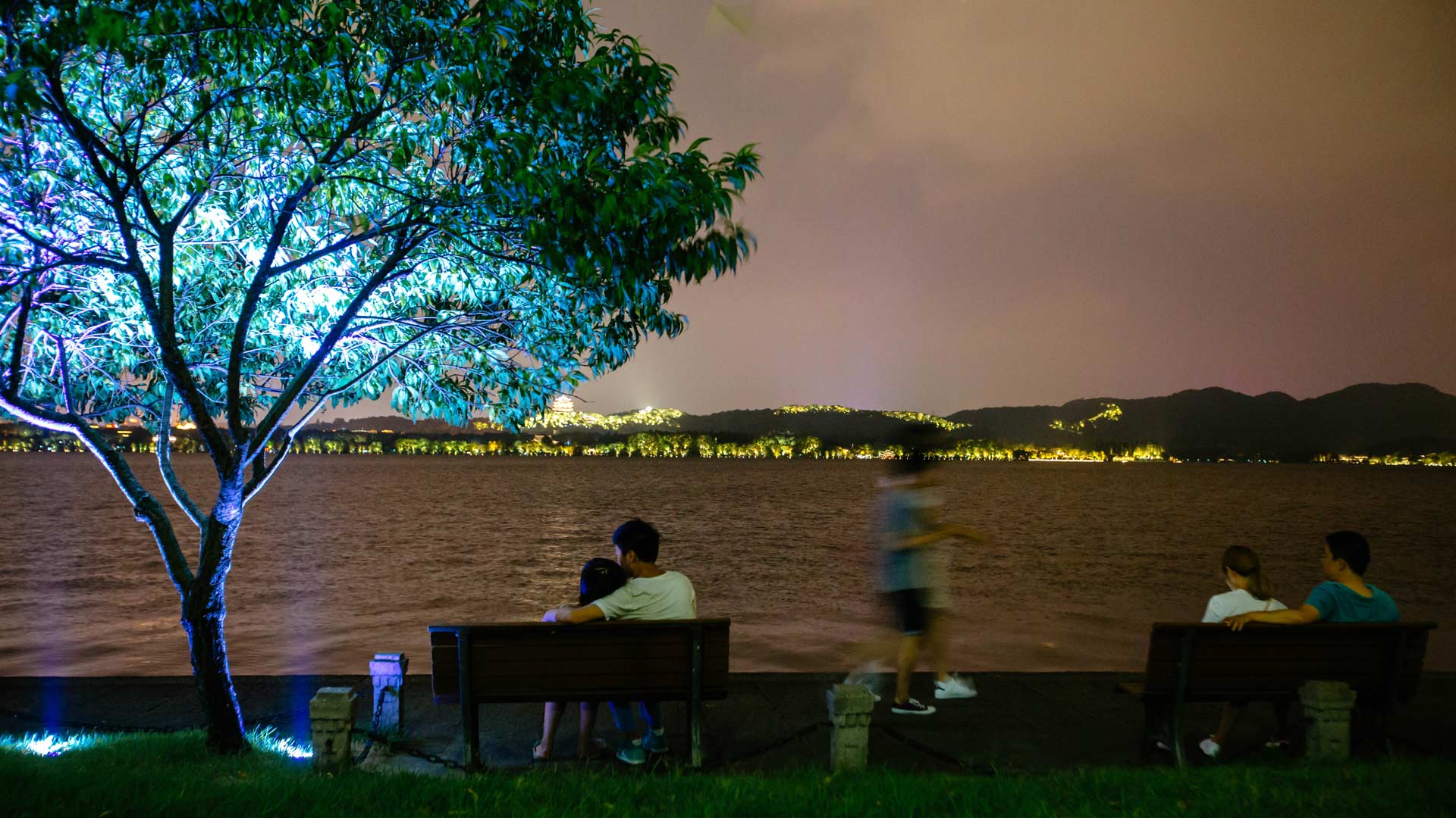 8月26日晚,市民在西子湖畔欣賞夜色。一枕錢塘江,懷擁西湖月,牽著運河走,挽著西溪眠……到訪杭州,游人無不感嘆驚奇這座城市的美麗與優(yōu)雅。新華社記者張鋮攝