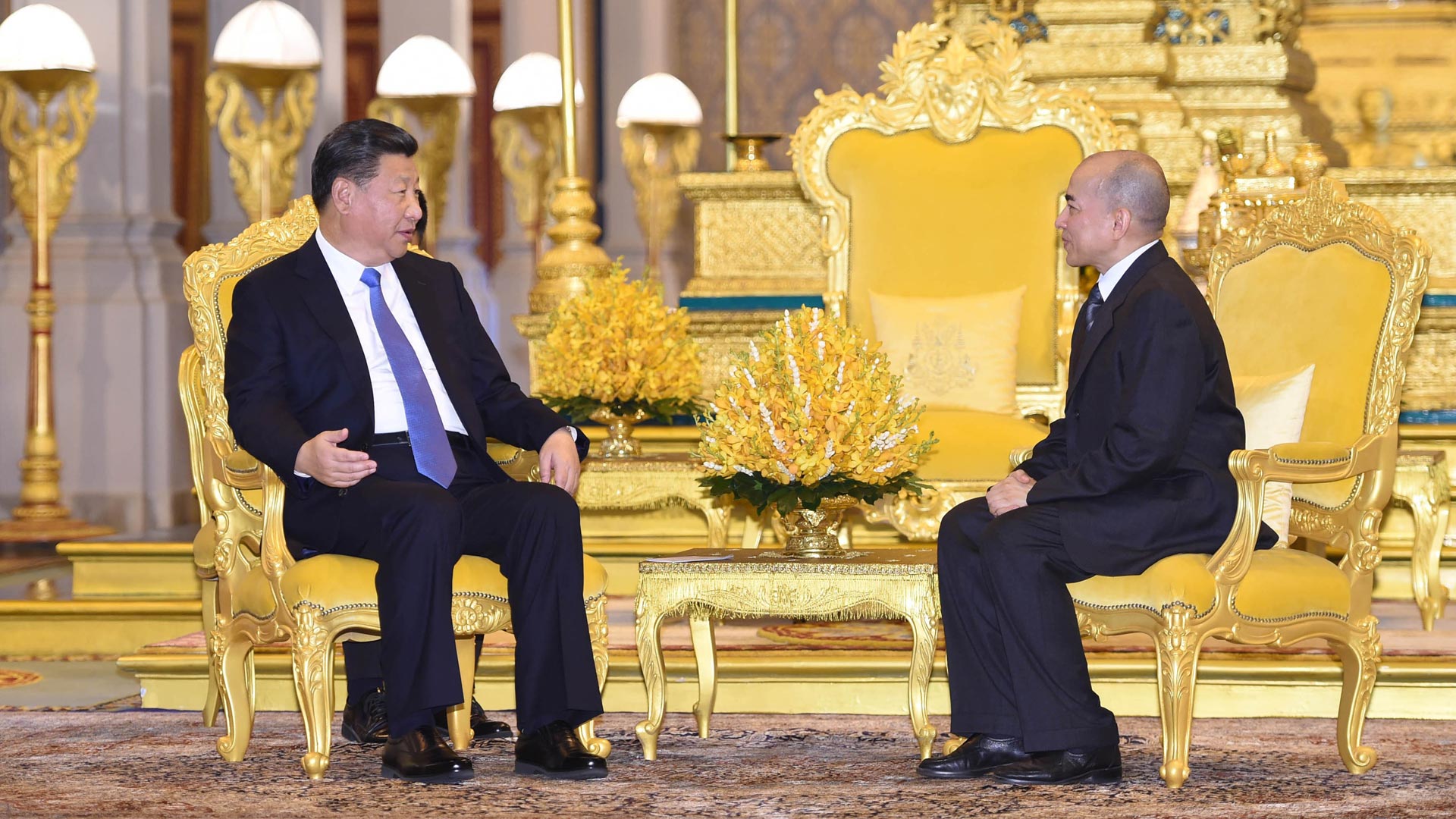 10月13日,國家主席習近平在金邊會見柬埔寨國王西哈莫尼。新華社記者 謝環(huán)馳 攝