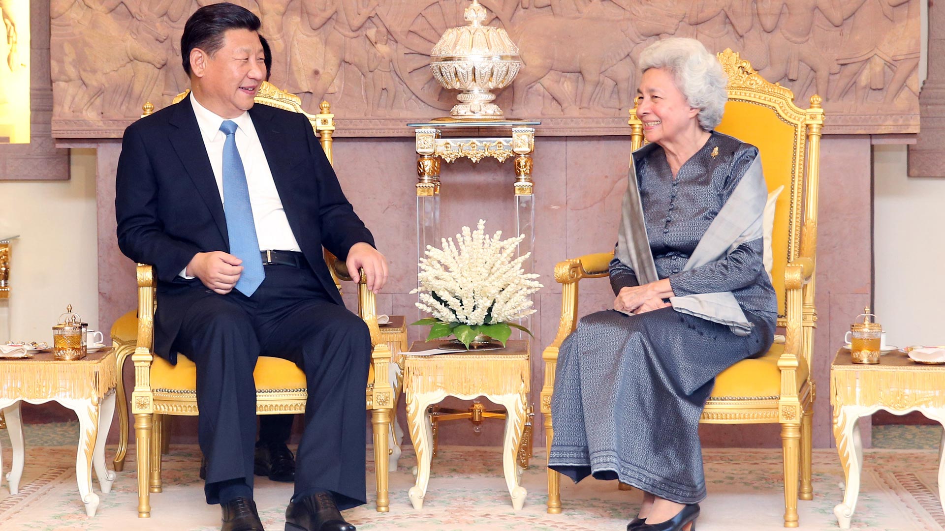 10月13日,國家主席習近平在金邊看望柬埔寨太后莫尼列。新華社記者 姚大偉 攝