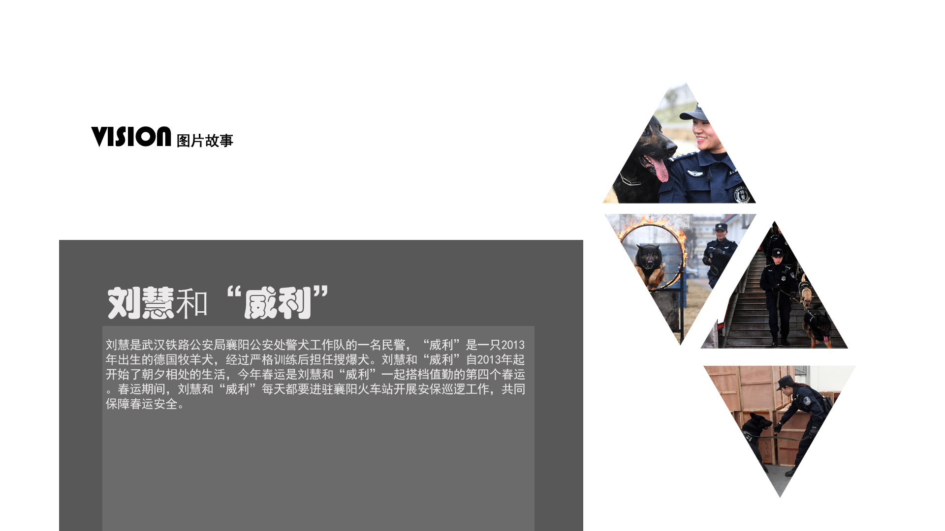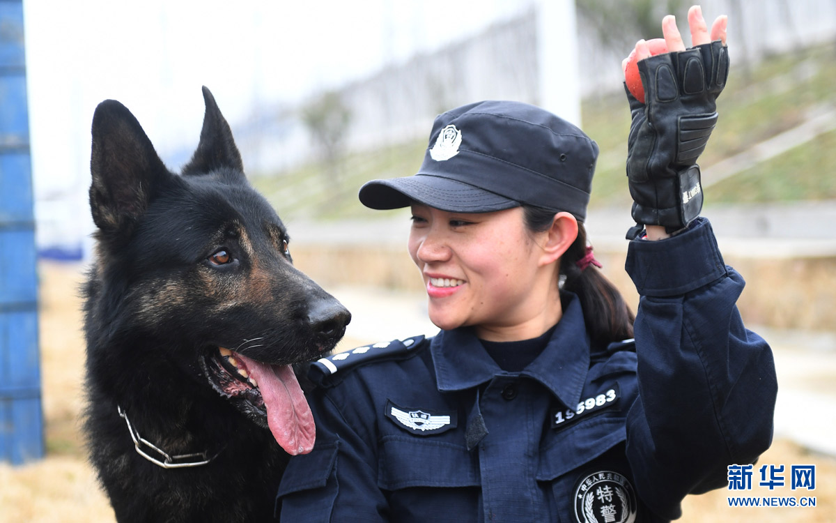 2月5日,劉慧和“威利”在警犬基地玩耍。劉慧是武漢鐵路公安局襄陽公安處警犬工作隊(duì)的一名民警,“威利”是一只2013年出生的德國牧羊犬,經(jīng)過嚴(yán)格訓(xùn)練后擔(dān)任搜爆犬。劉慧和“威利”自2013年起開始了朝夕相處的生活,今年春運(yùn)是劉慧和“威利”一起搭檔值勤的第四個春運(yùn)。春運(yùn)期間,劉慧和“威利”每天都要進(jìn)駐襄陽火車站開展安保巡邏工作,共同保障春運(yùn)安全。 新華社記者 程敏 攝
