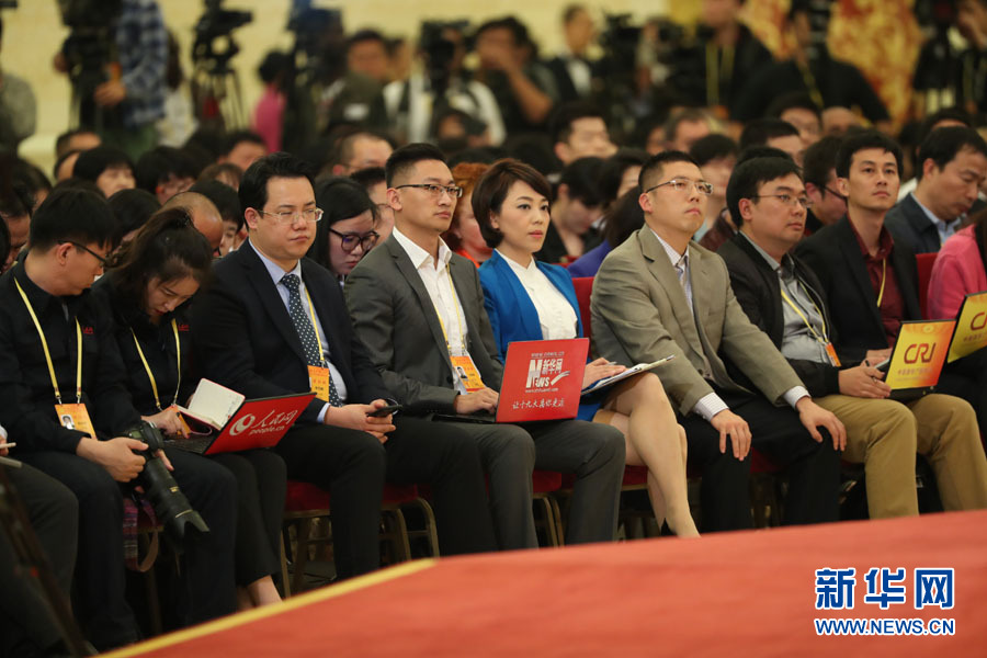 2017年10月17日下午,中國(guó)共產(chǎn)黨第十九次全國(guó)代表大會(huì)新聞發(fā)言人在人民大會(huì)堂三樓金色大廳舉行新聞發(fā)布會(huì),并回答中外記者的提問(wèn)。圖為新華網(wǎng)記者在新聞發(fā)布會(huì)現(xiàn)場(chǎng)。新華網(wǎng) 翟子赫 攝