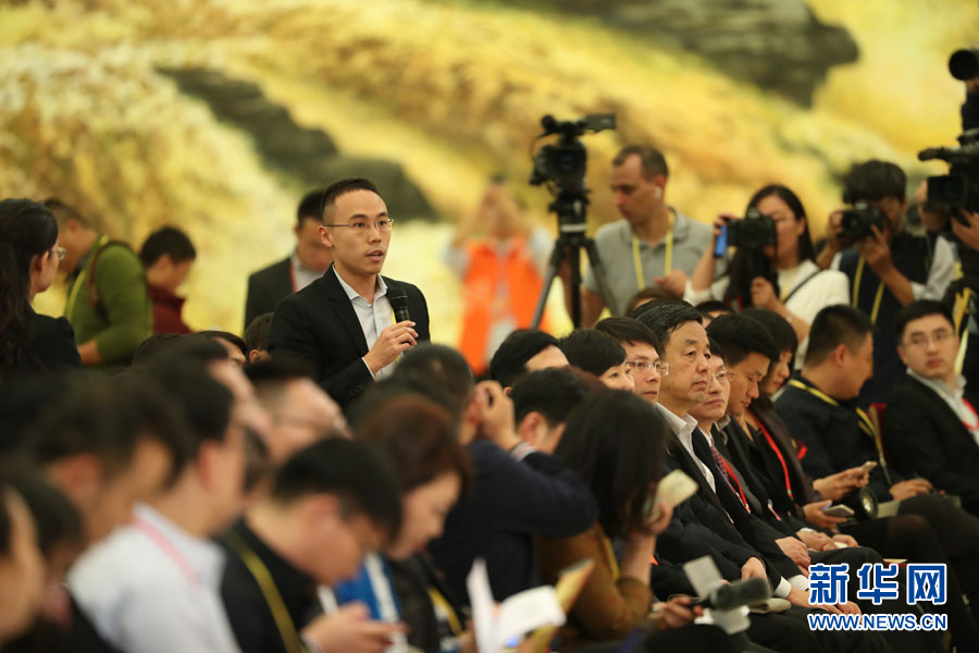 2017年10月17日下午,中國共產(chǎn)黨第十九次全國代表大會(huì)新聞發(fā)言人在人民大會(huì)堂三樓金色大廳舉行新聞發(fā)布會(huì),并回答中外記者提問。圖為新加坡《聯(lián)合早報(bào)》記者提問。新華網(wǎng) 翟子赫 攝