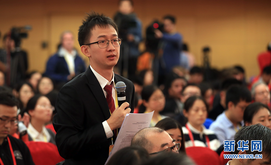 ??? 10月19日,十九大新聞中心舉行記者會,邀請中紀委、中組部負責人介紹黨的建設(shè)和全面從嚴治黨相關(guān)情況。圖為澳門澳亞衛(wèi)視記者提問。新華網(wǎng) 郝廣鵬攝