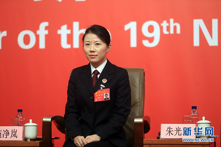 ??? 10月19日,十九大新聞中心舉辦集體采訪,邀請政法戰(zhàn)線代表談全面推進(jìn)依法治國。圖為上海市浦東新區(qū)人民檢察院公訴二處命名檢察官施凈嵐。新華網(wǎng) 郝廣鵬攝