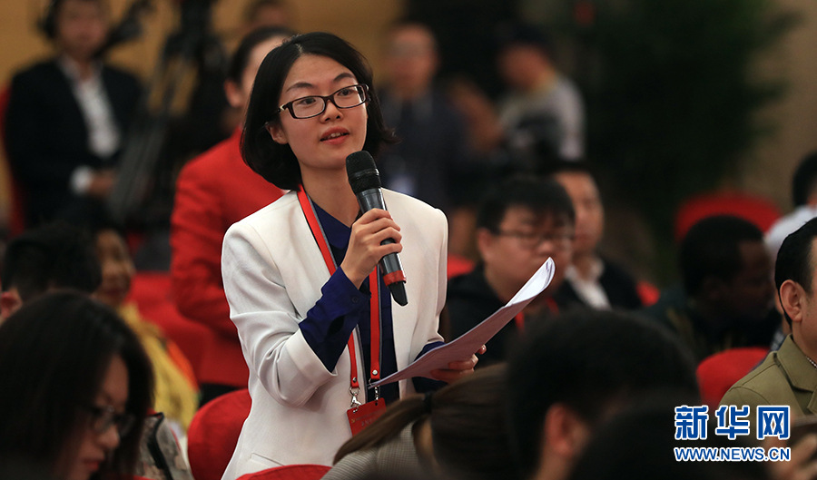 ??? 10月19日,十九大新聞中心舉辦集體采訪,邀請政法戰(zhàn)線代表談全面推進(jìn)依法治國。圖為中國新聞社記者提問。新華網(wǎng) 郝廣鵬攝