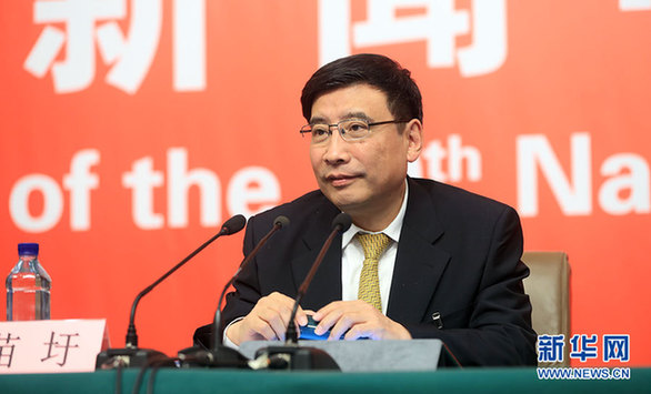 10月19日,十九大新聞中心舉辦集體采訪,邀請工信和通訊領(lǐng)域代表談走新型工業(yè)化道路。圖為工業(yè)和信息化部黨組書記、部長苗圩。新華網(wǎng) 郝廣鵬攝