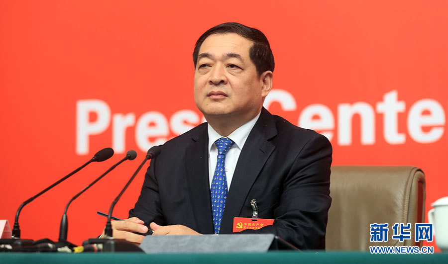 ??? 10月19日,十九大新聞中心舉辦集體采訪,邀請工信和通訊領(lǐng)域代表談走新型工業(yè)化道路。圖為山東省經(jīng)濟(jì)和信息化委員會(huì)黨組書記、主任錢煥濤。新華網(wǎng) 郝廣鵬攝